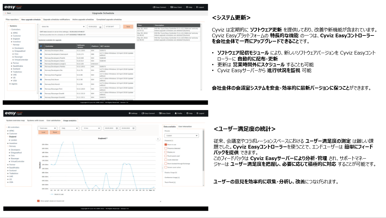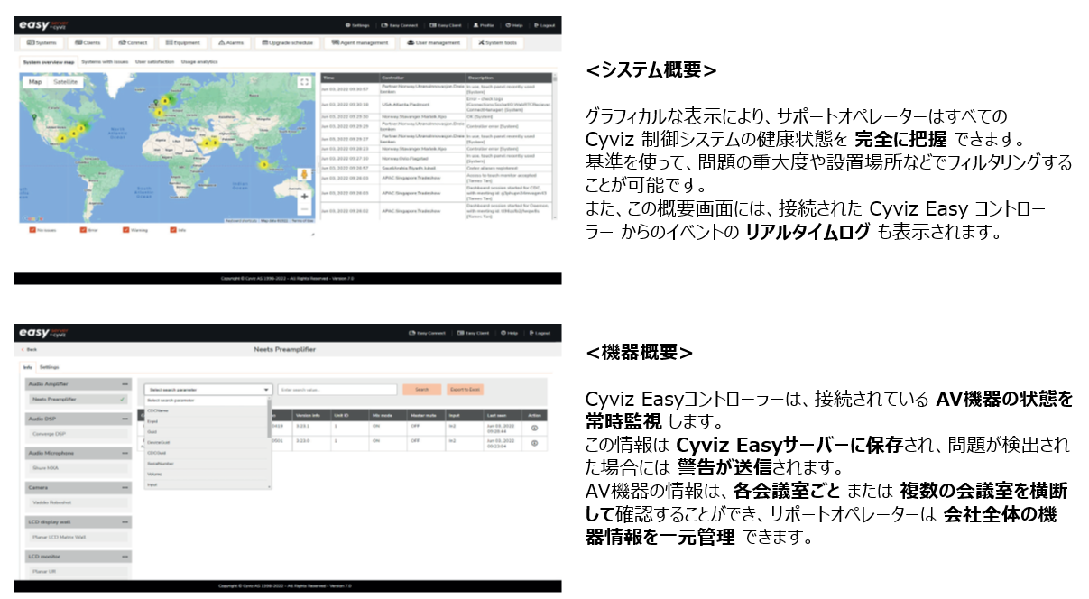 →Cyviz Easyコントローラーによって制御される機器の状況を一元管理