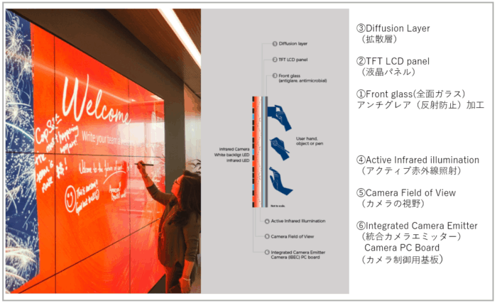 独自のClearSight(クリアサイト)による無制限タッチ、高精度認識。ユーザーは、個人のタッチディスプレイと同様に瞬時の操作感を、大型のビデオウォールデモ体験できます。